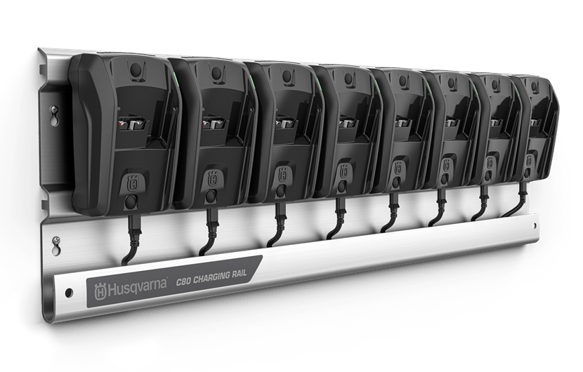 Husqvarna 40-C80 latausjärjestelmä kahdeksalla laturilla BLi akuille