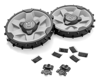 Muista aktivoida robotin käyttövalikosta lisävaruste "maastopyörät" mallissa Automower 305.