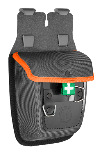 Yleiskotelo Flexi-metsurinvyöhön. Sopii esimerkiksi ensiapupakkauksen, GPS-laitteen, varavirtalähteen tai muiden pienempien tarvikkeiden kuljettamiseen. Ensiapupakkaus -merkintä. Kiinnityslenkit esimerkiksi liidulle tai mittanauhalle.