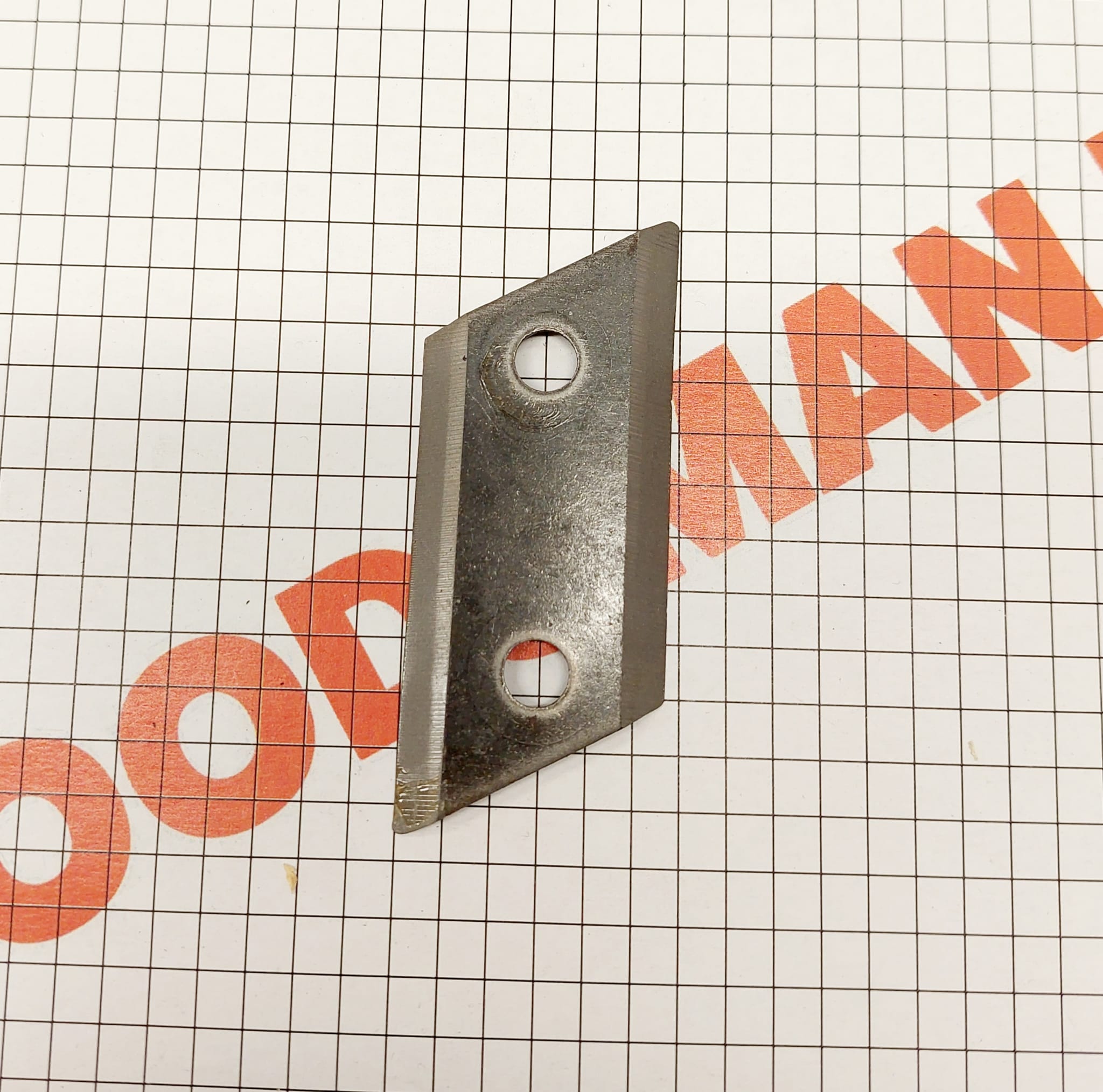 Oksasilppurin terä. Sopii mm. Klippo , Stiga ja Steinmax oksasilppureihin. Teräpultin reikä 7,05mm / 12mm Sivun pituus 55,3mm Pituus päästä päähän (Lävistäjä) 76mm Leveys 29,2mm Paksuus... Lue lisää
