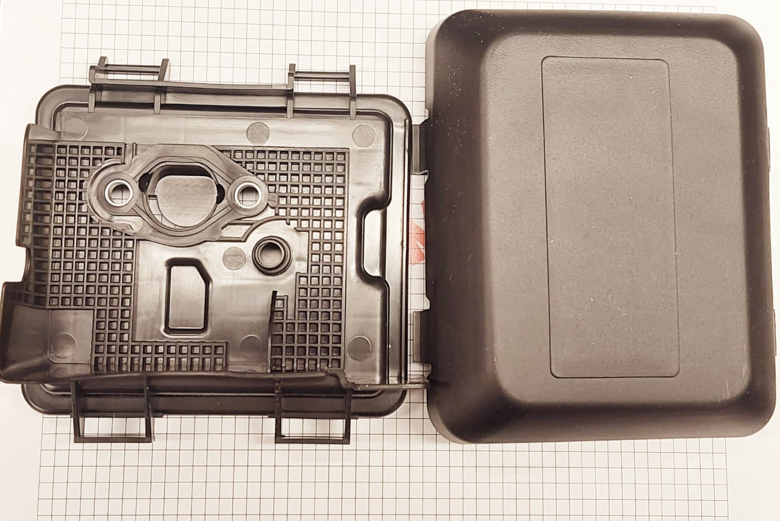 Ilmansuodattimen kansi ja pohja Hondan moottoreihin GCV135 , GCV160 ja GCV190. 154mm x 137mm x 108mm.