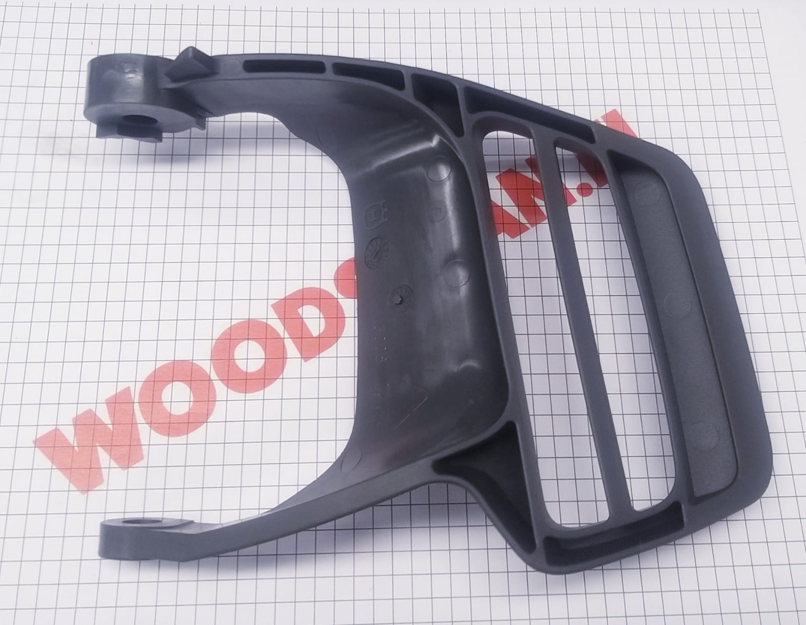 Takapotkusuoja Husqvarna moottorisahoihin 440 e II, 435 e II, 435, 435 II, 135 E. Tarkista sopivuus varaosakuvista.